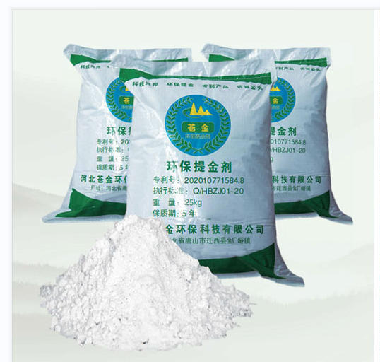 "Cangjin" brand gold extraction reagent is a new environmental-friendly gold extraction reagent, it is gray white powder and is widely used to the recovery of gold and silver in various gold and silver containing materials. It can replace the application of sodium cyanide without changing the original process flow. It has the advantages of environmental-friendly, stable index, safe use and low comprehensive cost.