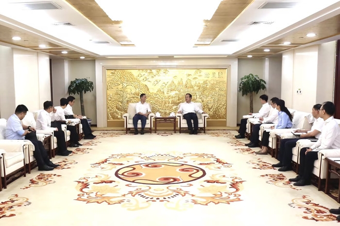 5月23日,集团公司党委副书记、董事、总经理殷长波在集团总部,会见了广东省国资委党委书记、主任余钢一行,双方就深化央地合作,推动国资央企高质量发展进行了深入交流。